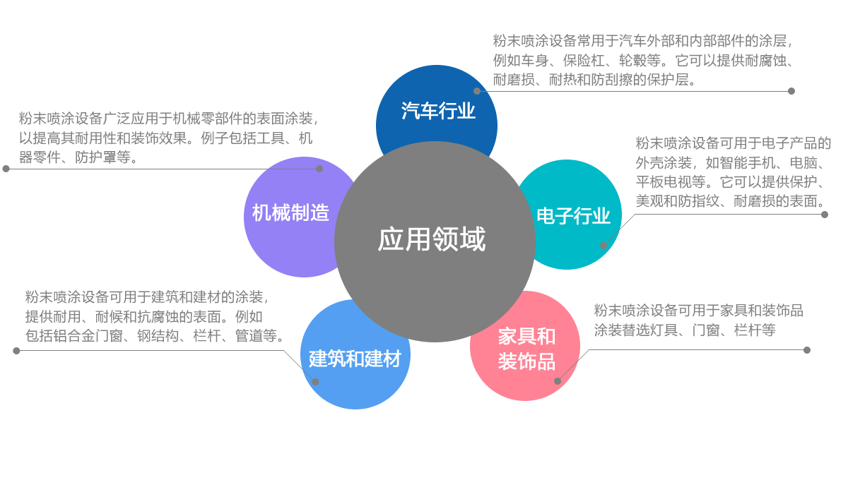 这只是粉末喷涂设备应用的一些示例,实际上它在各个行业中都有广泛的应用,以提供各种涂层的需求。